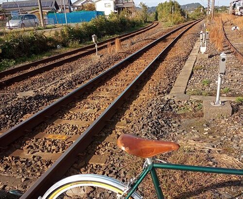 ゆっくりとランドナーを走らせる。目的地の港町は近いのか潮の香りがする。一時停止、踏切だ。 それは目を奪う風景だった。単線のレールがまっすぐに伸びていく。そしてそこから一本の単線レールが頼りなさそうに分岐していくのだった。 単線とはいえ前者の…
