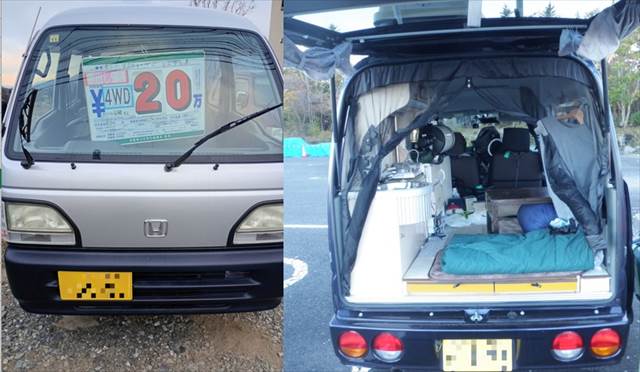 栃木県北部の山の登山口だった。駐車場に軽のバンが止まっていた。外に居た持ち主にお願いして中を見せてもらった。それは動く家だった。工夫が随所にあり自分の心臓は妖しく動くのだった。山仲間もまた軽ワンボックスのリアシートを取っ払い動く家に改造している。それも見せてもらった。